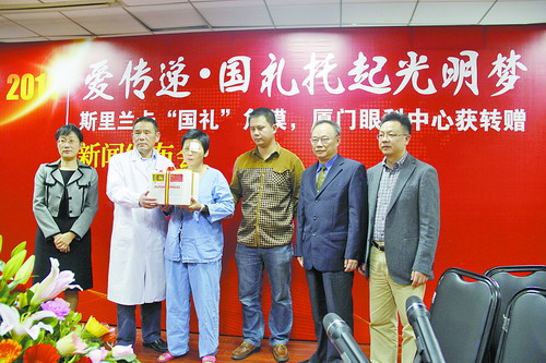為回饋中方,斯里蘭卡第一夫人了解到我國目前眼角膜來源緊張后,贈送給主席夫人10枚眼角膜,隨后這份“國禮”被轉贈給廈門大學附屬廈門眼科中心。來自湖南、江西、福建、甘肅等地的12名眼疾患者分享了這一厚禮,重見光明。