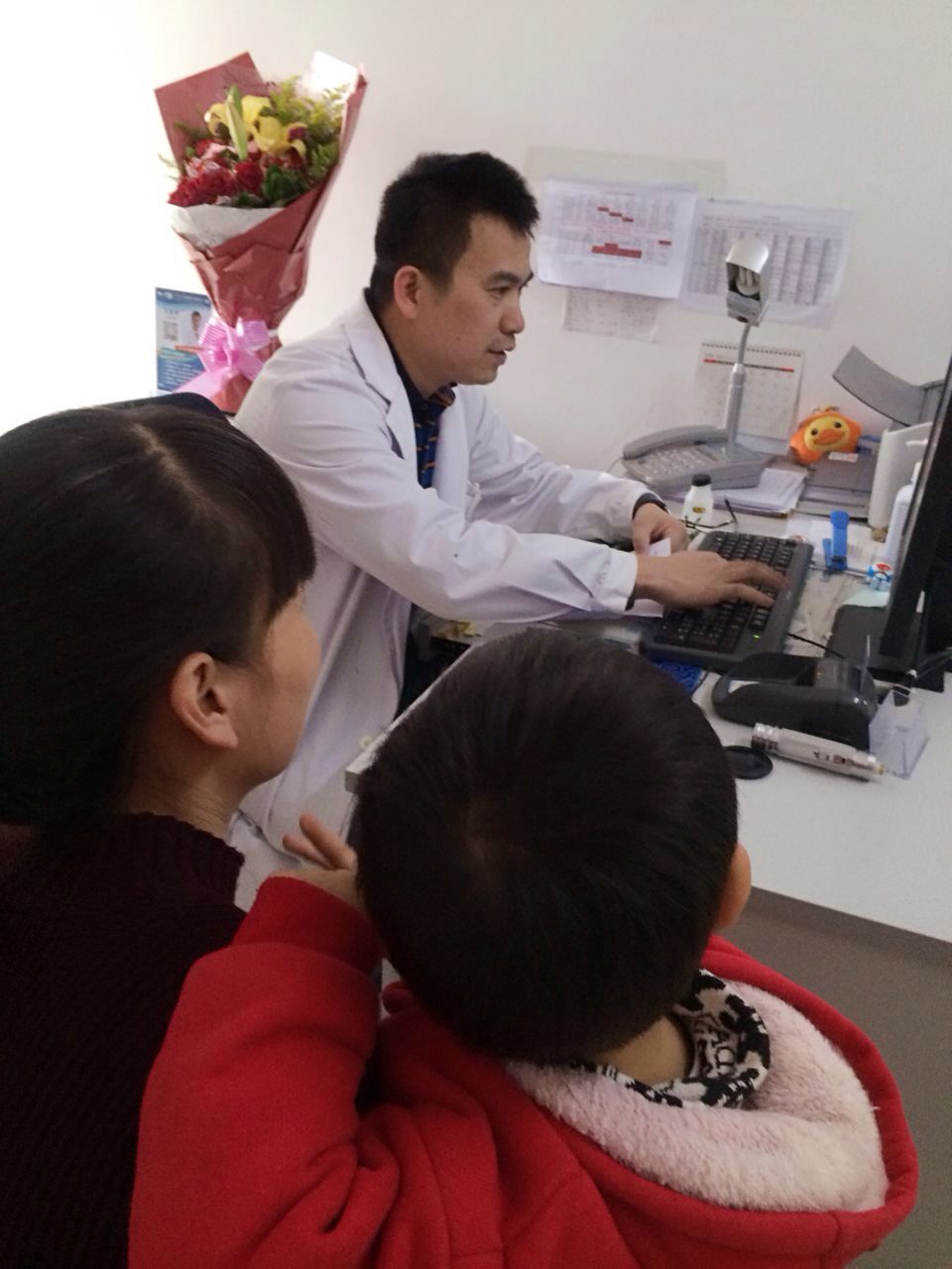 “謝謝莊醫(yī)生,真的感謝你那天中午剛做完手術沒顧上吃飯還給我孩子做檢查看眼睛,辛苦你了。“這天,一位患兒的家長將一束鮮花送到我院斜視與小兒眼科莊建福副主任醫(yī)師手中,并連聲道謝。