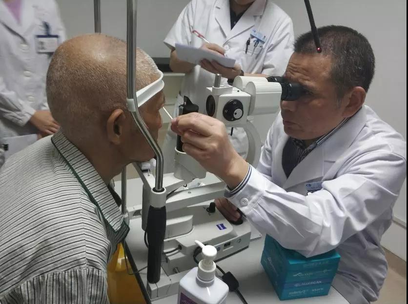 吳護(hù)平副院長為阿伯檢查眼睛