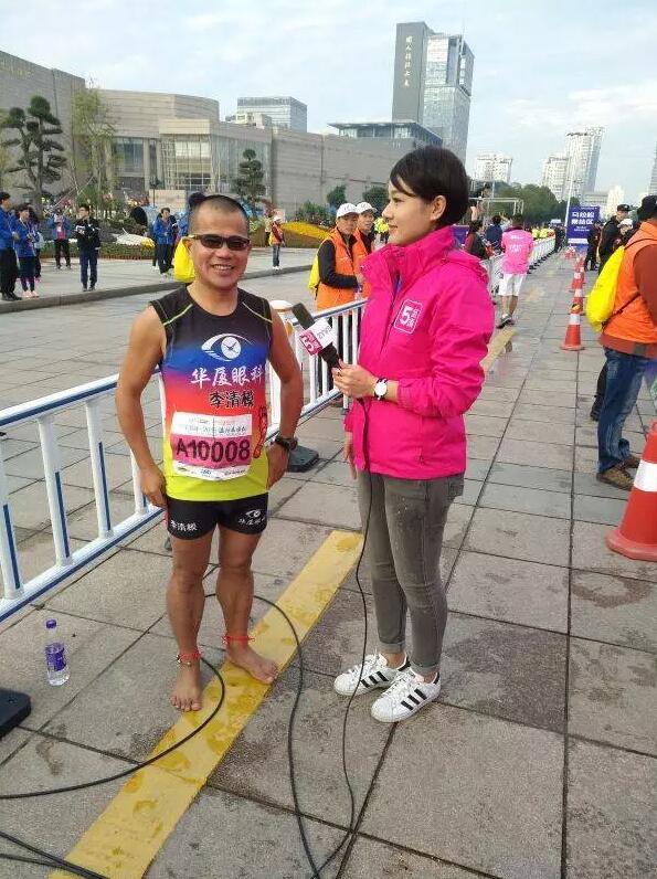 眼科醫(yī)院集團形象代言人、廈門赫赫有名的“赤腳大仙”李清模(阿摸Amo)赴香港參加12日舉行的2017渣打香港馬拉松賽,這是他人生中第68場馬拉松,這距1月15日他參加臺灣金門馬拉松賽剛過了27天。