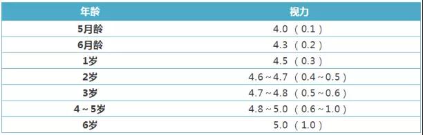 兒童視力發(fā)育表
