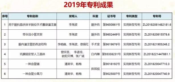 2019年全院發(fā)表SCI文章12篇,核心期刊文章31篇;5項(xiàng)專利獲得授權(quán);出版專著5部;在全國(guó)眼科年會(huì)投稿309篇,省級(jí)以上學(xué)術(shù)會(huì)議發(fā)言41人次。