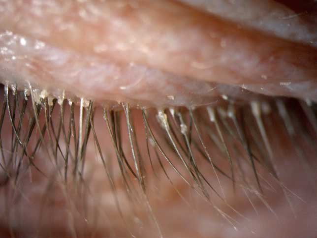 其實(shí)蠕形螨主要活動(dòng)在毛囊和皮脂腺中,以皮膚碎屑和腺體分泌物作為食物來源,而睫毛根部的瞼板腺是排泄油脂的重要部位,因此眼睫毛和瞼板腺也是螨蟲的主要活動(dòng)場所。